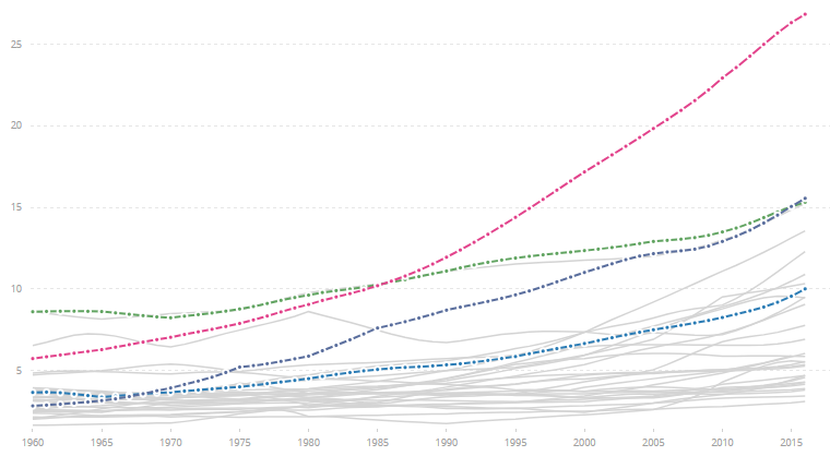 Data from the World Bank shows the ageing trends of China compared to other countries. What can we learn about how China will age?